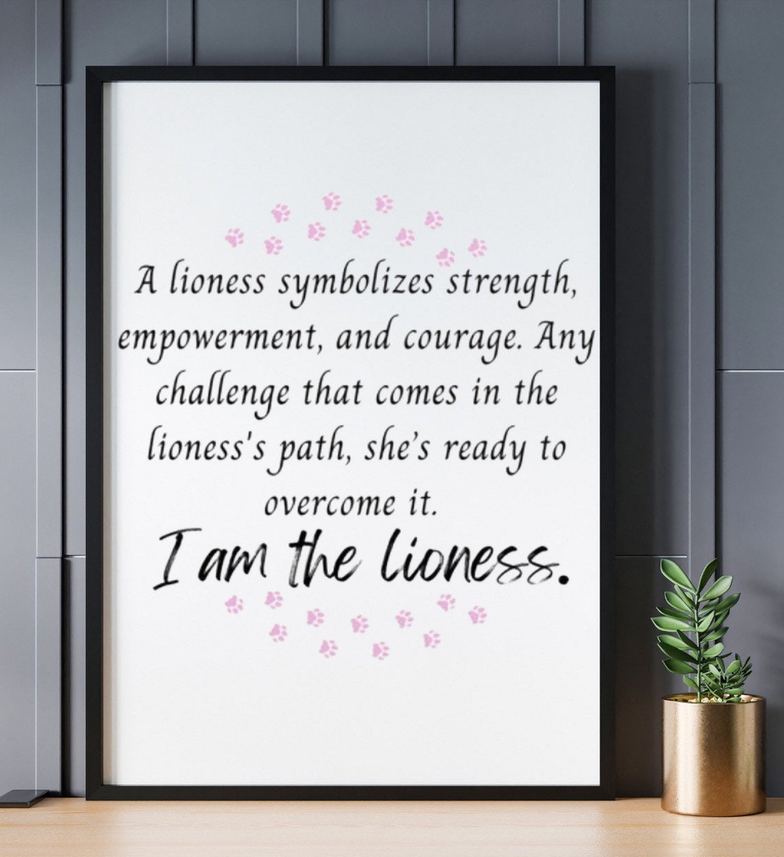 Empowering Lioness Framed Poster Motivational Framed Wall Art for