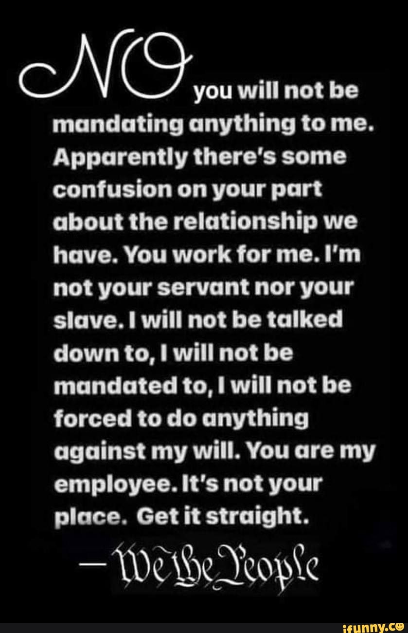 NO mandating anything to me. Apparently there’s some confusion on